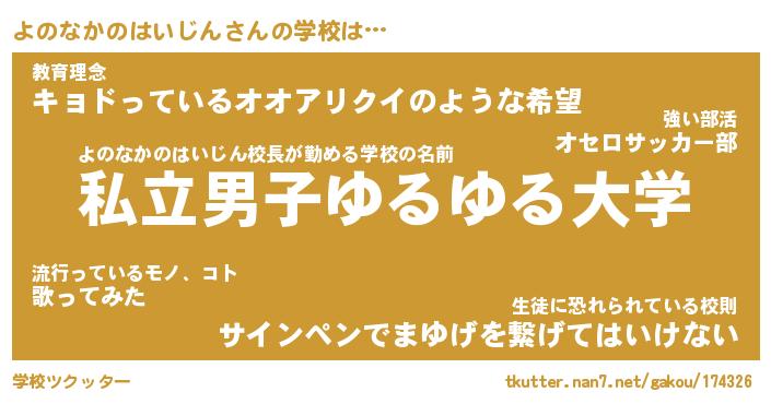 | 男性向けラノベタイトル風あだ名 | 『よのなかのはいじんの憂鬱』 |