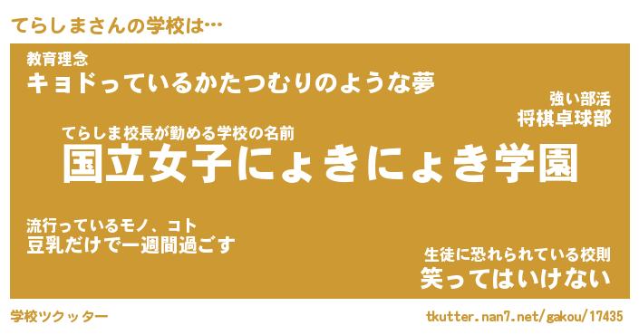 | 2回繰り返すあだ名 | 『てらてら』『ててらら』『きびきび』 |