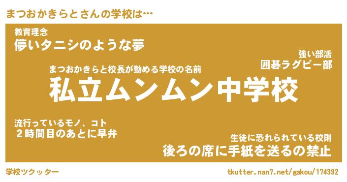 | 男性向けラノベタイトル風あだ名 | 『まつおかきらとの憂鬱』 |
