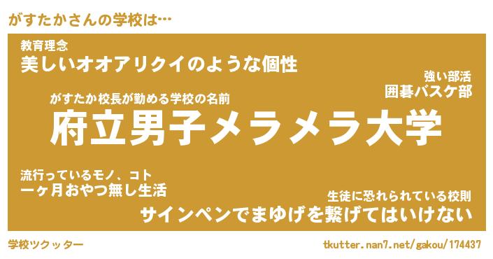 | 意味不明あだ名 | 『ペロリンがすたか』『永久保存がすたか』 |