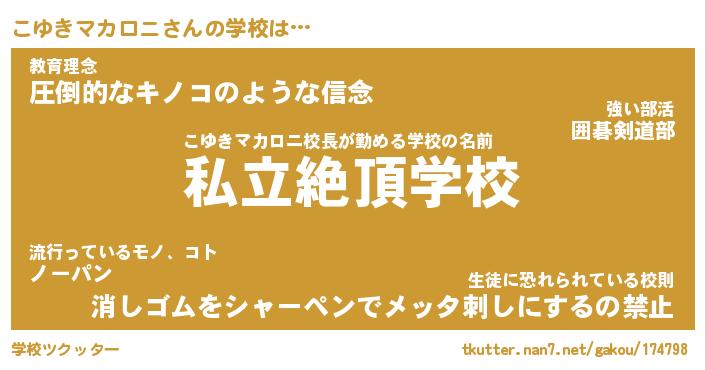 | 男性向けラノベタイトル風あだ名 | 『こゆきマカロニの憂鬱』 |