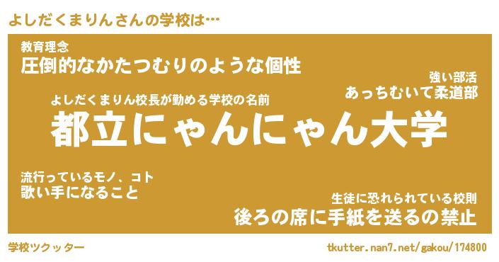 | 男性向けラノベタイトル風あだ名 | 『よしだくまりんの憂鬱』 |