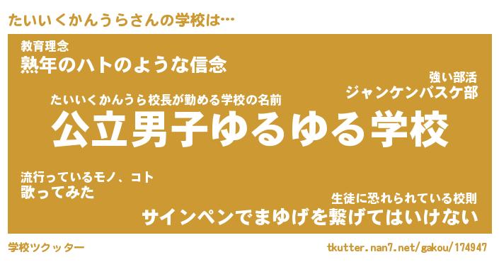 | 男性向けラノベタイトル風あだ名 | 『たいいくかんうらの憂鬱』 |