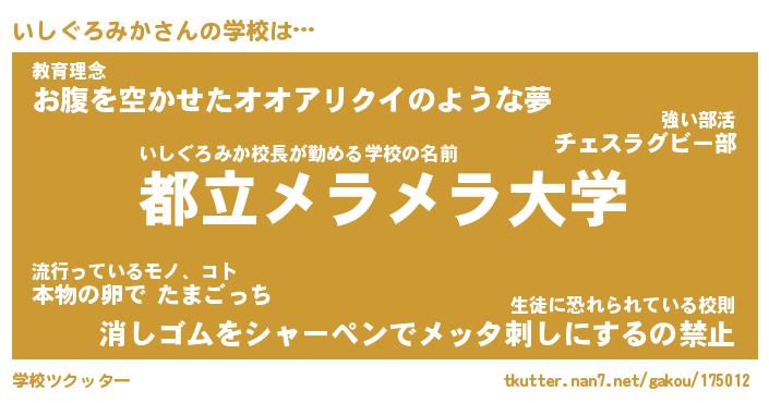 | 胡散臭い通販商品みたいなあだ名 | 『必ず成功するブレスレット…その名も「いしぐろみか」』 |