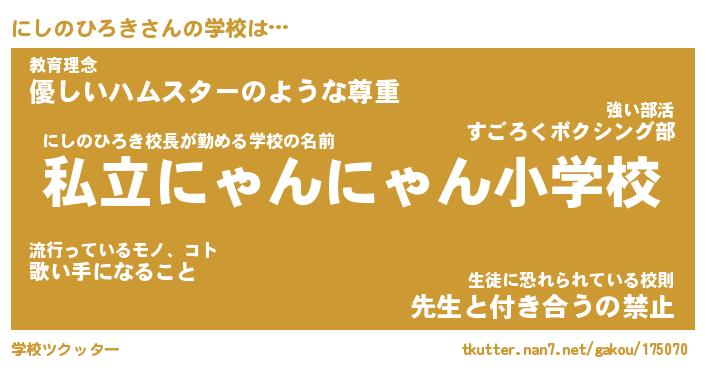 | ヘコむあだ名 | 『にしもー』『豆乳』『にしっちょ』 |