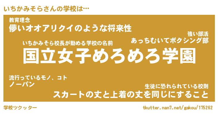 | 伝説のあだ名 | 『封印されしスナイパーいちかみそら』 |
