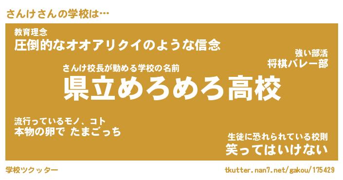 | 男性向けラノベタイトル風あだ名 | 『さんけの憂鬱』 |