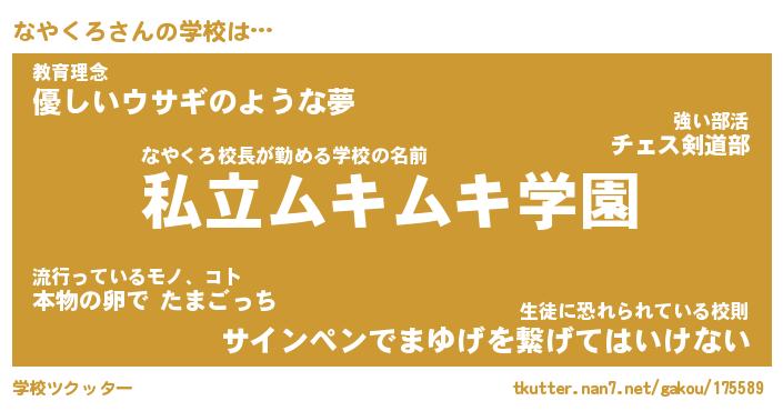 | 男性向けラノベタイトル風あだ名 | 『なやくろの憂鬱』 |