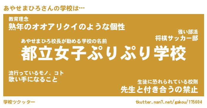 | 伝説のあだ名 | 『封印されしスナイパーあやせまひろ』 |