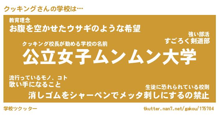 | ファンタジー風あだ名 | 『クッフェル』『エターナルクッキングー』 |