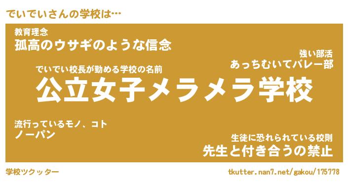 | 先生 | でいでい先生が勤める学校名『府立猫耳小学校』 |