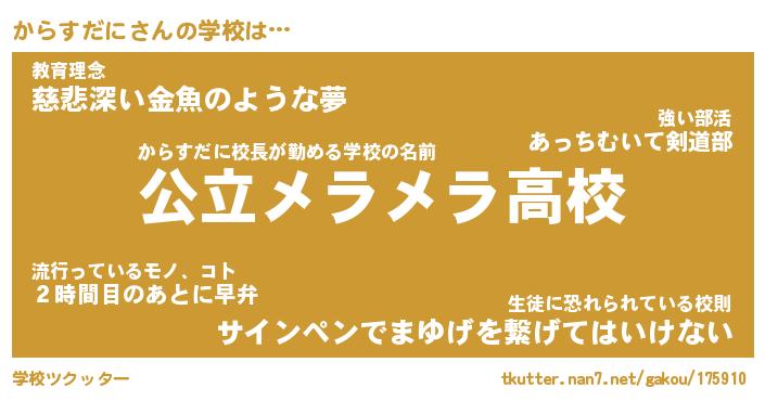 | ヘコむあだ名 | 『からにー』『牛乳』『から太郎』 |