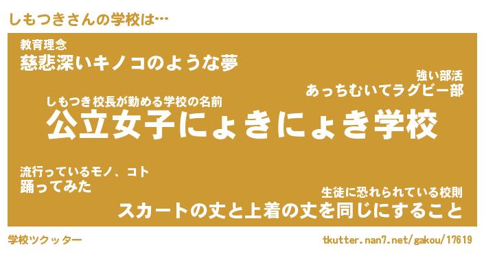 | 意味不明あだ名 | 『ペロリンしもつき』『永久保存しもつき』 |