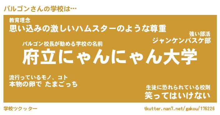 | 男性向けラノベタイトル風あだ名 | 『パルゴンの憂鬱』 |