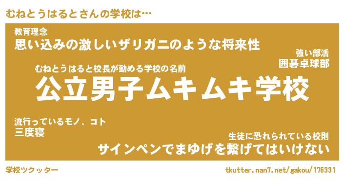 | ヘコむあだ名 | 『むねにー』『つくし』『むねお』 |