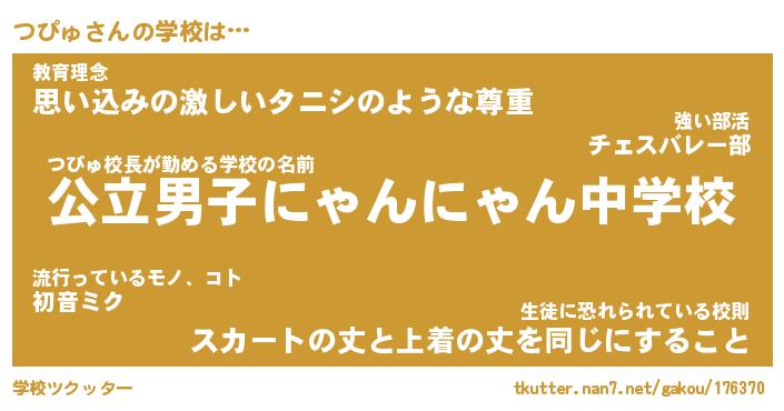 | 男性向けラノベタイトル風あだ名 | 『つぴゅの憂鬱』 |