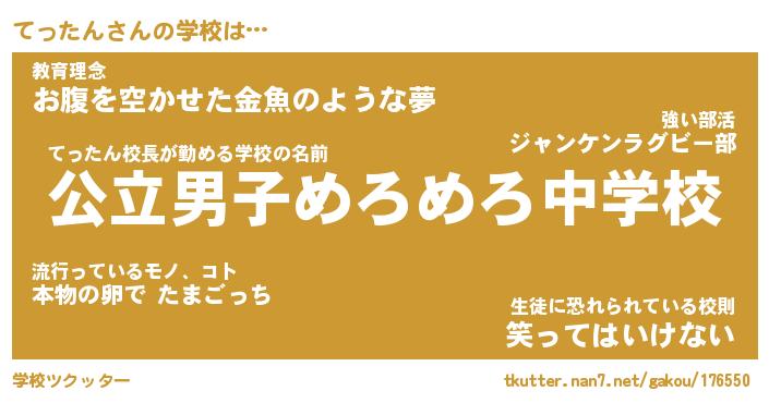 | 男性向けラノベタイトル風あだ名 | 『てったんの憂鬱』 |
