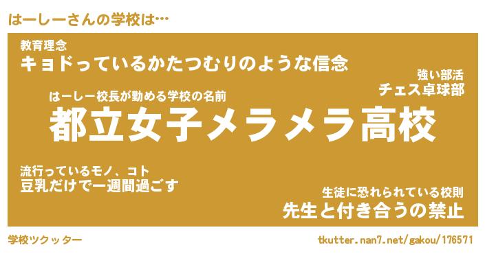 | 意味不明あだ名 | 『ペロリンはーしー』『永久保存はーしー』 |