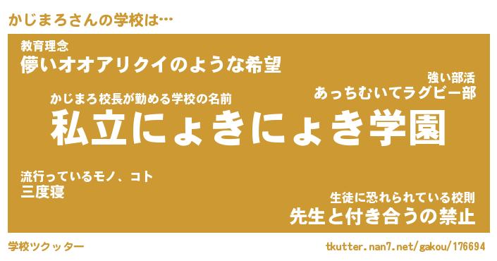 | ヘコむあだ名 | 『かじにゅー』『つくし』『かじ太郎』 |