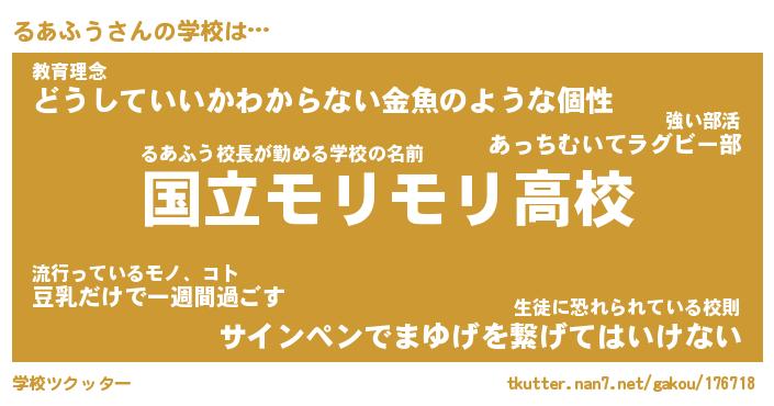 | 男性向けラノベタイトル風あだ名 | 『るあふうの憂鬱』 |