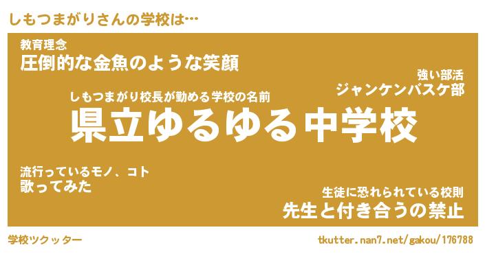 | 男性向けラノベタイトル風あだ名 | 『しもつまがりの憂鬱』 |