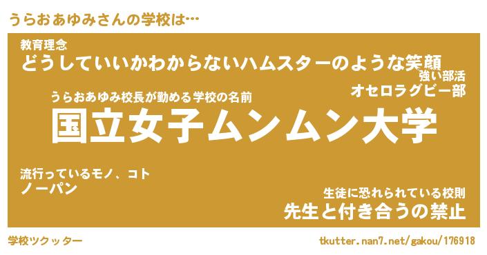 | 恥ずかしいあだ名 | 『プリティーうらおあゆみ』『うらっちょ』 |