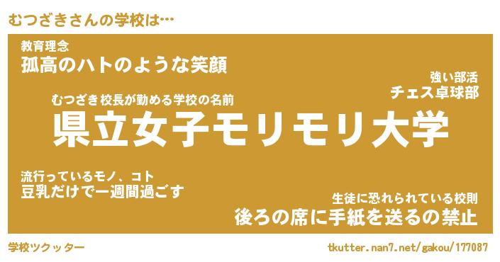 | ヘコむあだ名 | 『むつふぇ~』『つくし』『むつっ子』 |