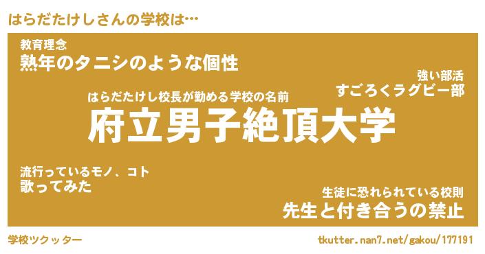 | 伝説のあだ名 | 『不死鳥の竜騎士はらだたけし』 |
