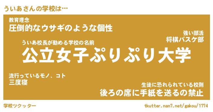 | ピコ太郎風あだ名 | 『ウコ六郎』『ピウ一郎』『ウイ八郎』 |