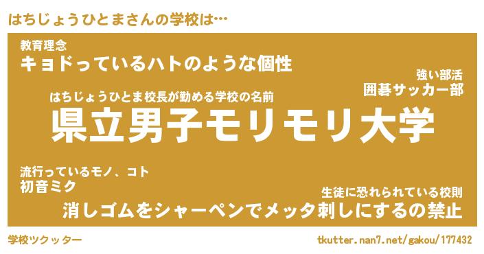 | 男性向けラノベタイトル風あだ名 | 『ハチジョウヒトマアートオンライン』 |