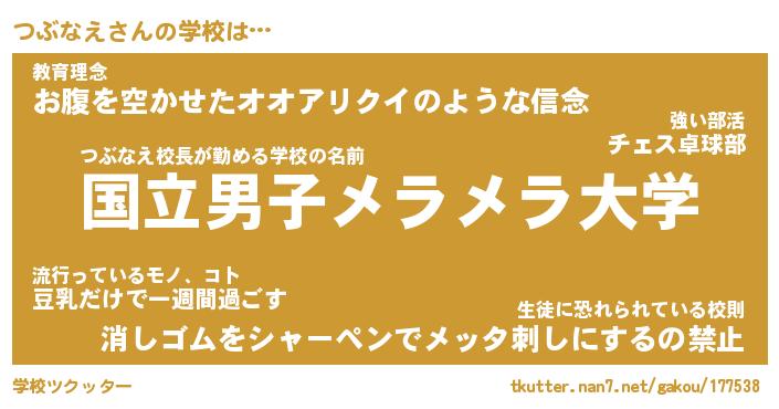 | ファンタジー風あだ名 | 『ツブフェル』『エターナルツブナエー』 |