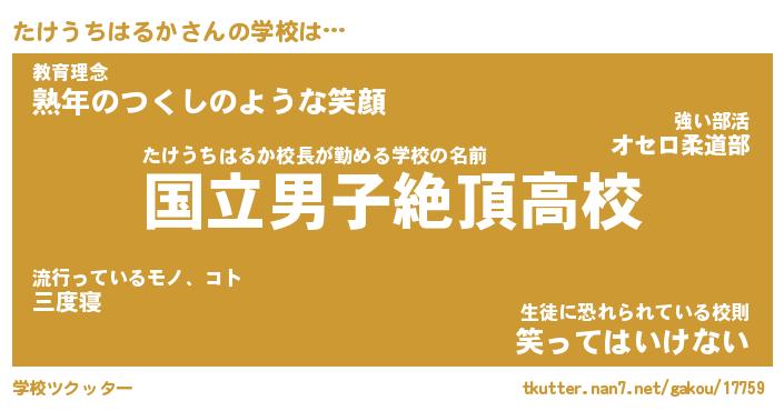 | 男性向けラノベタイトル風あだ名 | 『たけうちはるかの憂鬱』 |