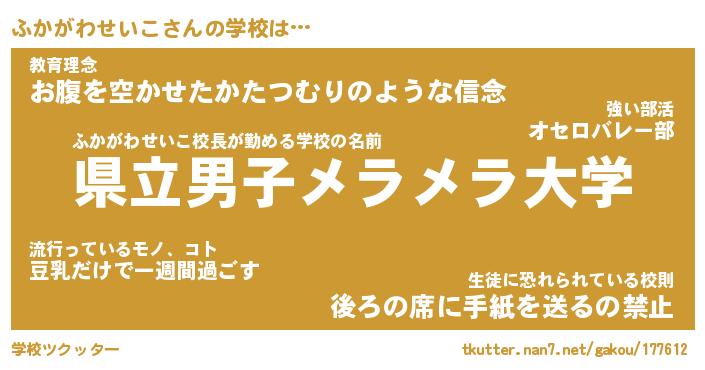 | 伝説のあだ名 | 『不死鳥の竜騎士ふかがわせいこ』 |