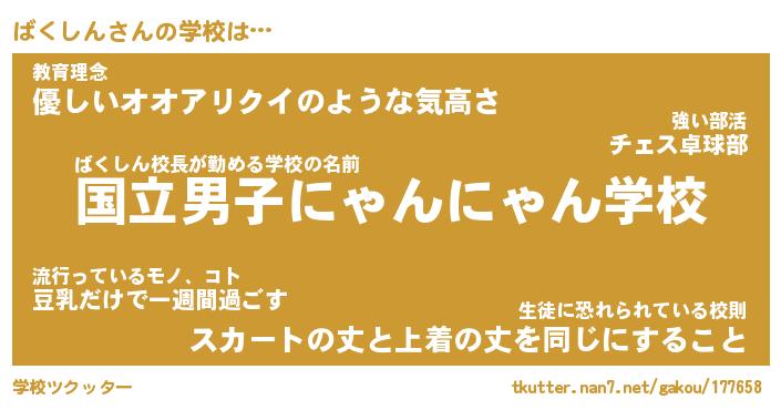| 公立男子ムキムキ中学校は(略 …「」 | 10月03日 07:36 |