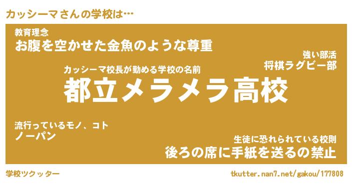 | ヒーロー風カッコイイあだ名 | 『スーパーカッシーマ』『銀牙騎士カッ』 |