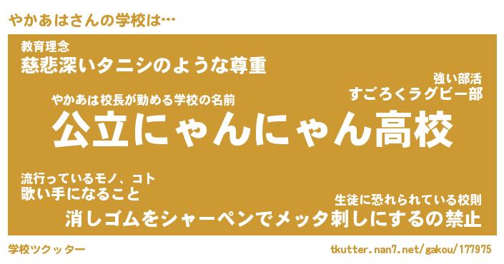 | 意味不明あだ名 | 『ペロリンやかあは』『永久保存やかあは』 |