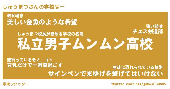 | ヒーロー風カッコイイあだ名 | 『スーパーシュウマツ』『炎刃騎士シュ』 |