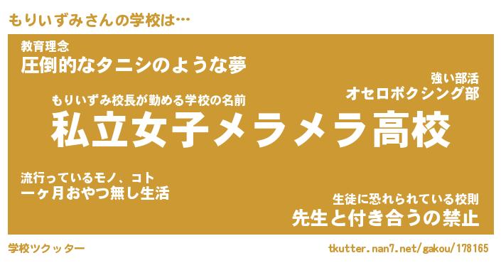 | ファンタジー風あだ名 | 『モリフェル』『エターナルモリイズミー』 |