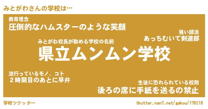 | 男性向けラノベタイトル風あだ名 | 『みとがわの憂鬱』 |