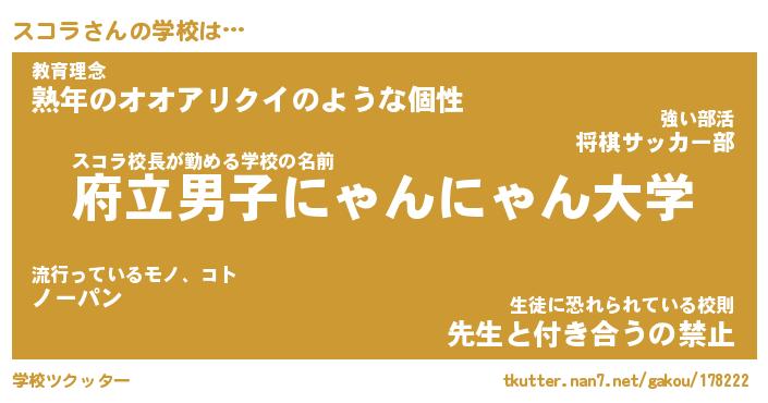 | 意味不明あだ名 | 『ペロリンスコラ』『スコラフォーエバー』 |