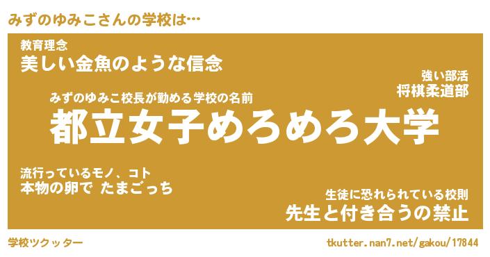 | 伝説のあだ名 | 『封印されしスナイパーみずのゆみこ』 |