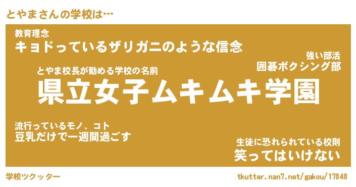 | ヘコむあだ名 | 『とやにー』『酢こんぶ』『とやっ子』 |
