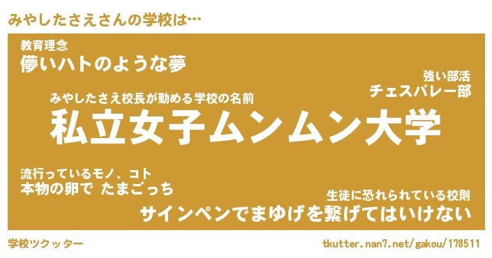 | ヘコむあだ名 | 『みやにゅー』『なまこ酢』『みやを』 |