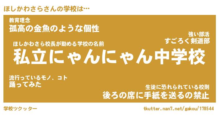 | ヘコむあだ名 | 『ほしもー』『つくし』『ほし太郎』 |