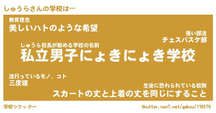 | 男性向けラノベタイトル風あだ名 | 『しゅうらの憂鬱』 |