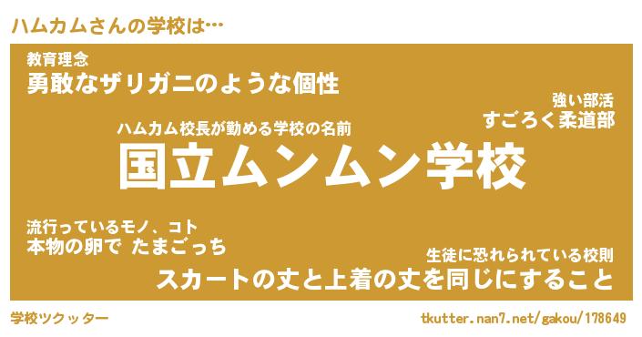 | ポケモン風あだ名 | 『ハムチュウ』『ハムカダネ』 |