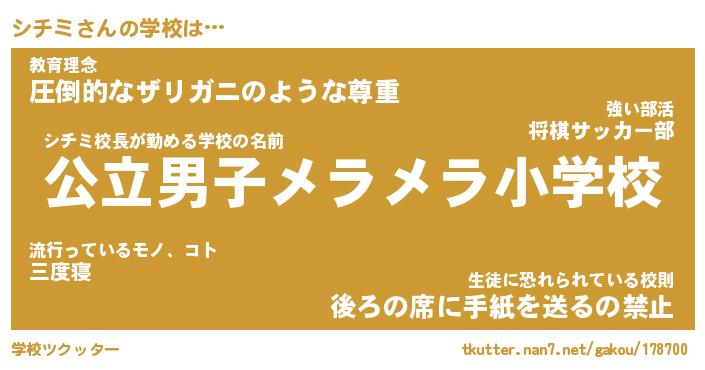 | 男性向けラノベタイトル風あだ名 | 『シチミの憂鬱』 |