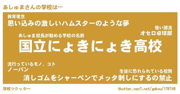 | 男性向けラノベタイトル風あだ名 | 『あしゅまの憂鬱』 |