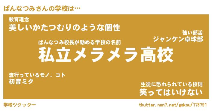 | 男性向けラノベタイトル風あだ名 | 『ばんなつみの憂鬱』 |