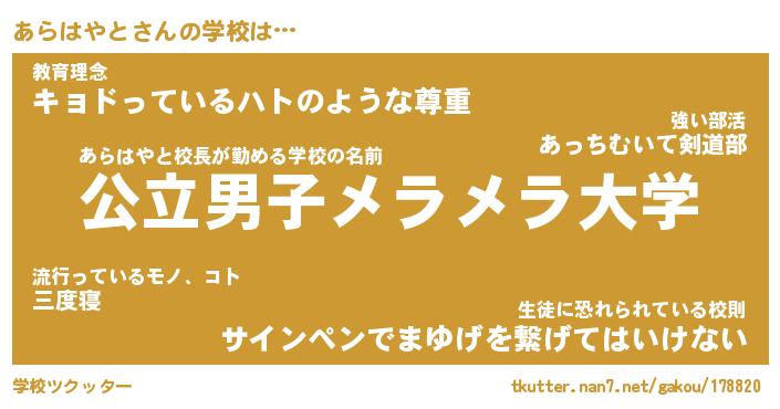 | 肩書あだ名 | 『あらはやと社長』『あらはやと国家主席』 |